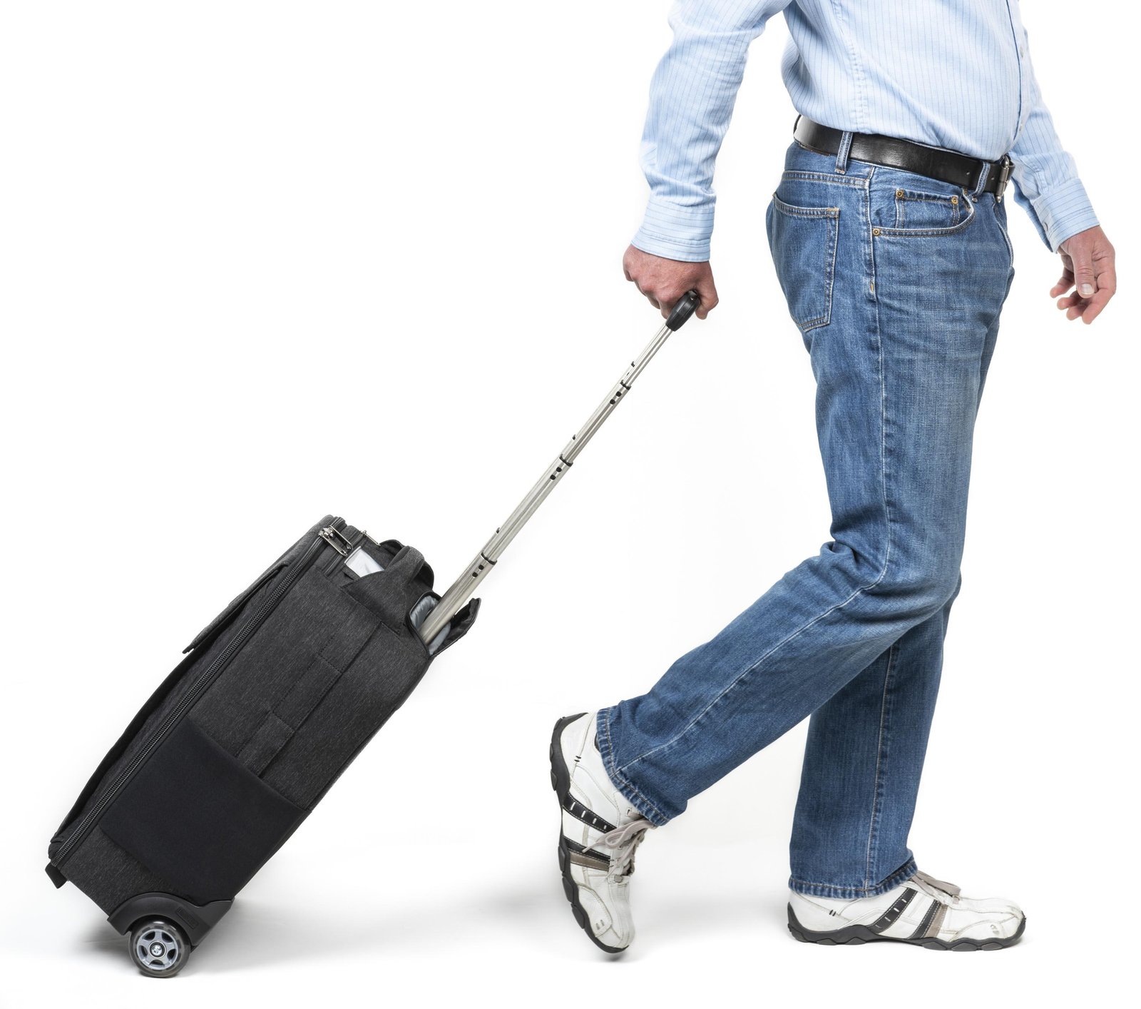 Extra tall handle height keeps the bag away from your feet when rolling