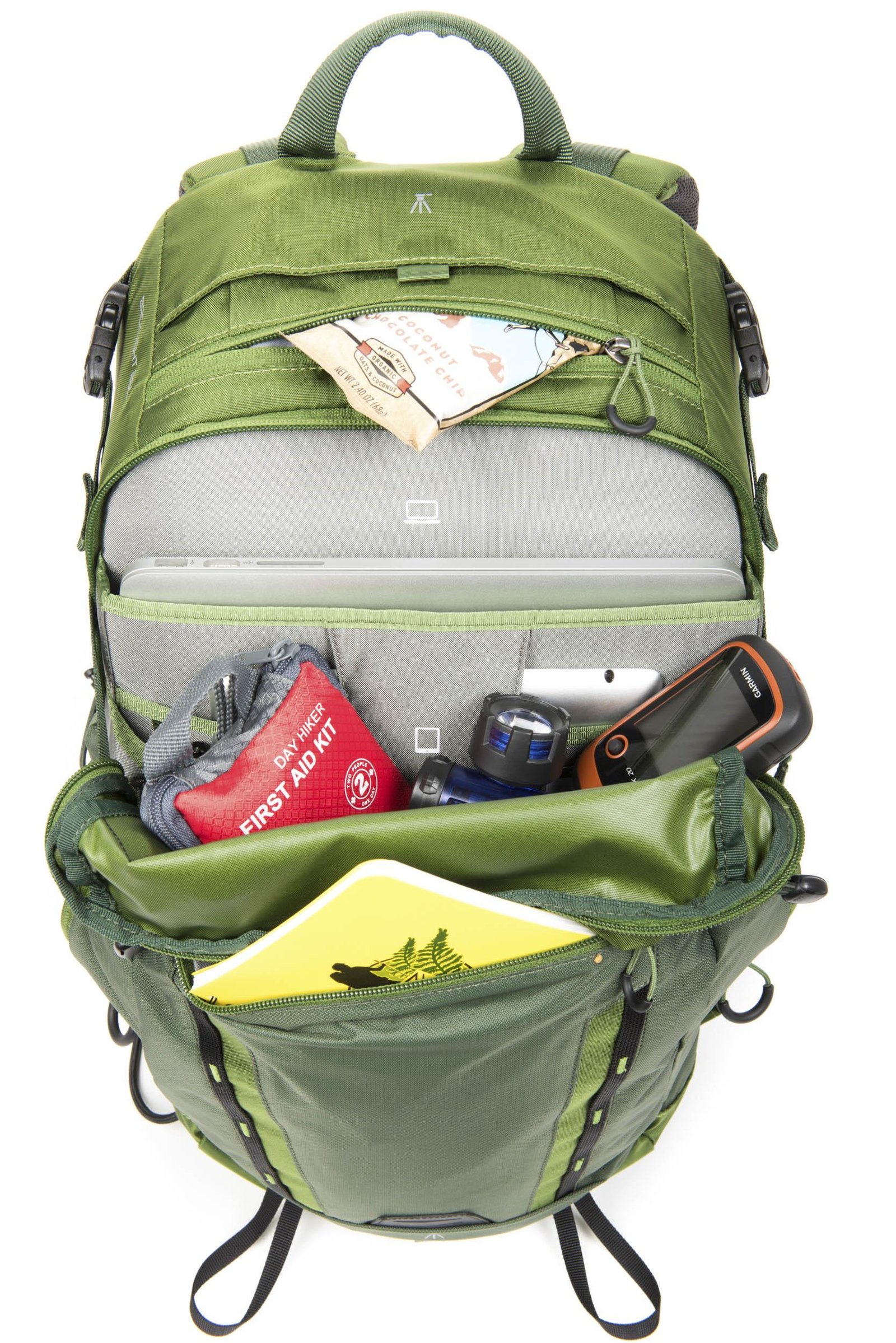 - Daypack carry capacity in rront pockets totals 9 litres - for personal gear for a day’s outing: extra layers, a light jacket, food, etc.