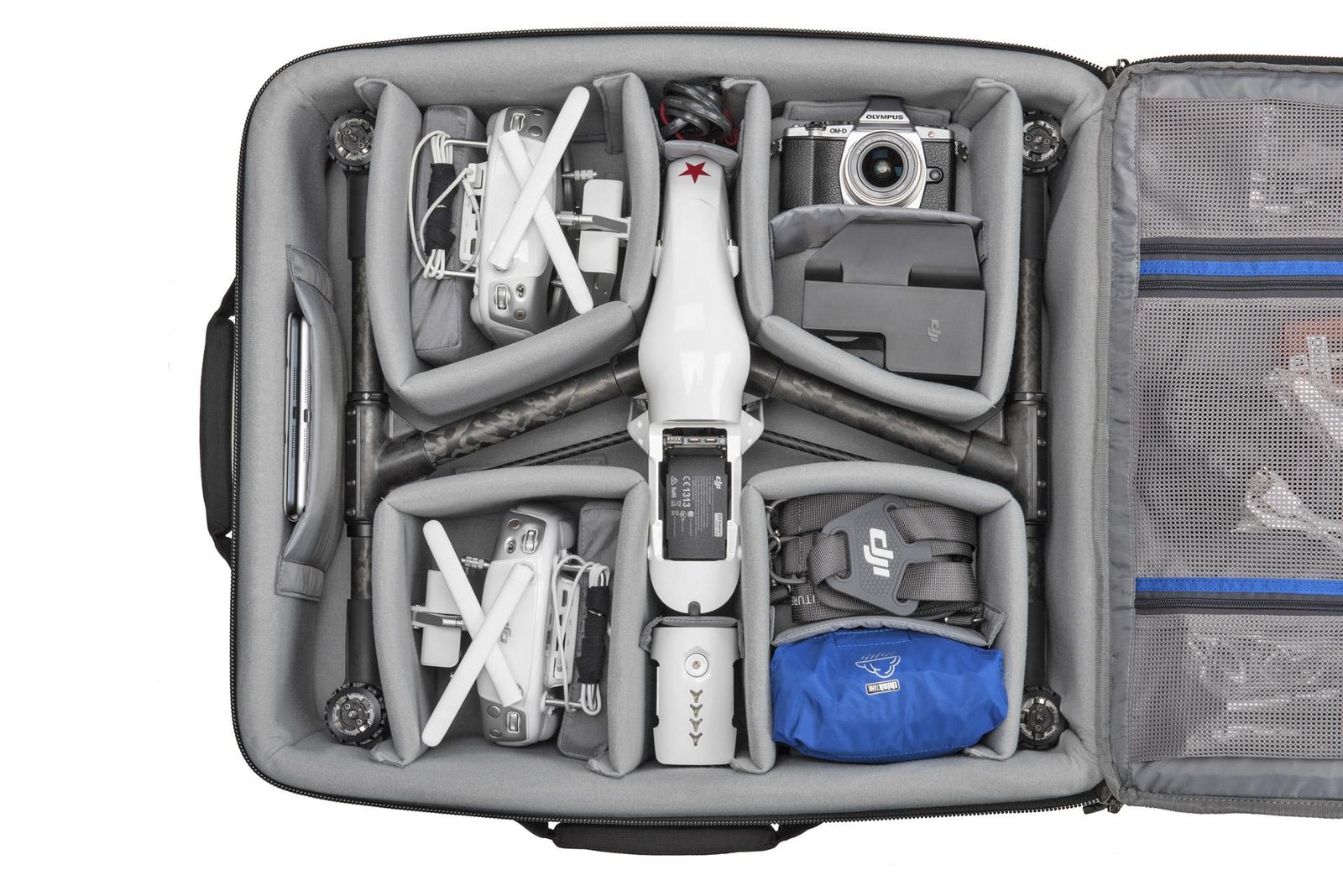 Comfortable backpack straps and lumbar support enable you to go farther into the field to get “the shot.” A customizable divider set protects your quadcopter and allows plenty of space for essential accessories.