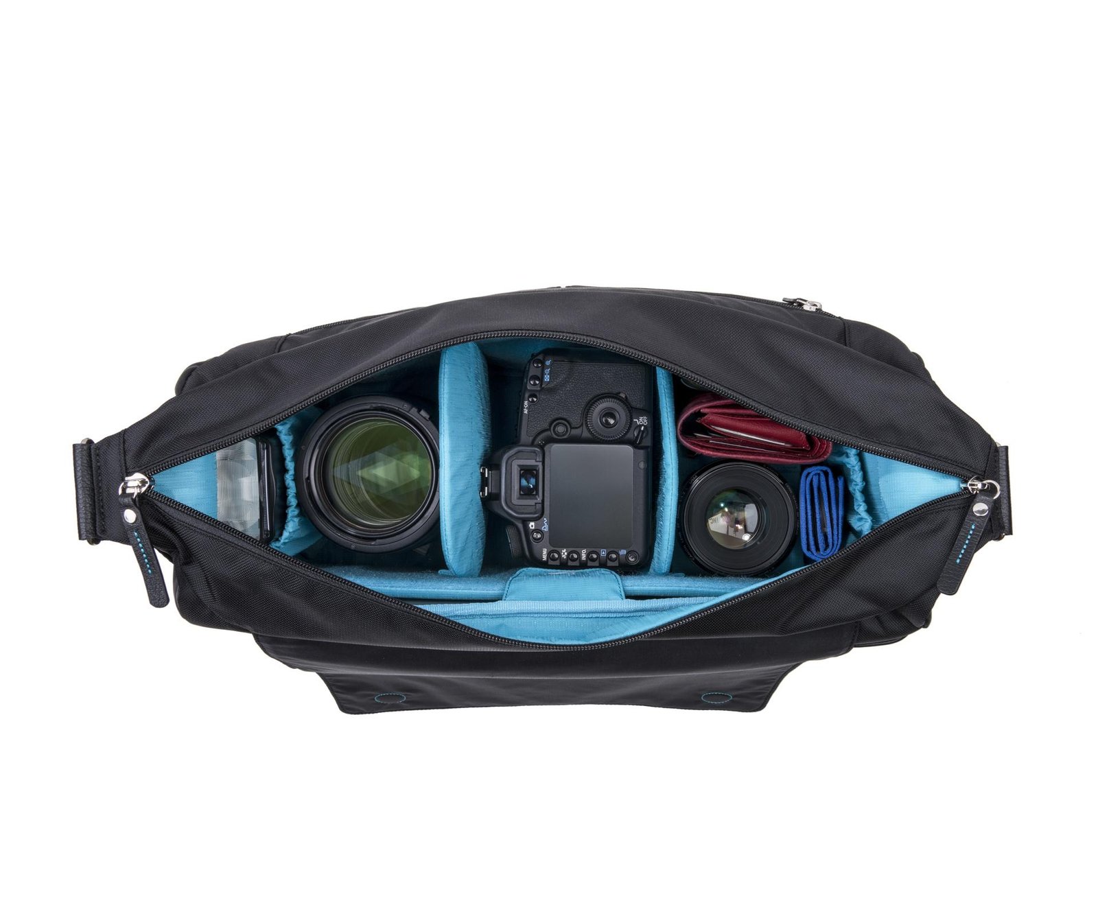 • Example: 5D MIII, 24–70mm f/2.8 attached, 70–200mm f/2.8 detached, 16–35mm f/2.8, iPad