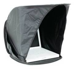 This is a portfolio that "pops open" to form a complete sun shade that blocks peripheral light and works with 12" - 17" laptops (does not hold laptop).